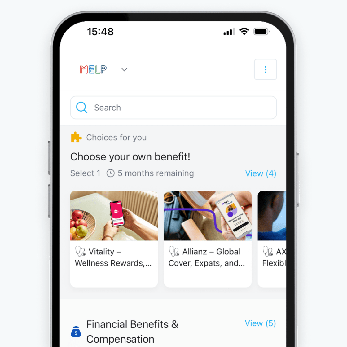 Employees can choose products and services from the MELP online shop, creating their own personalised benefits package based on their individual needs.