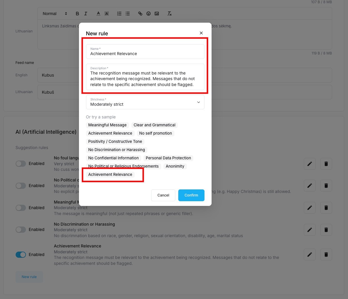 If someone writes a recognition message unrelated to the selected achievement, MELP will ask them to adjust it.